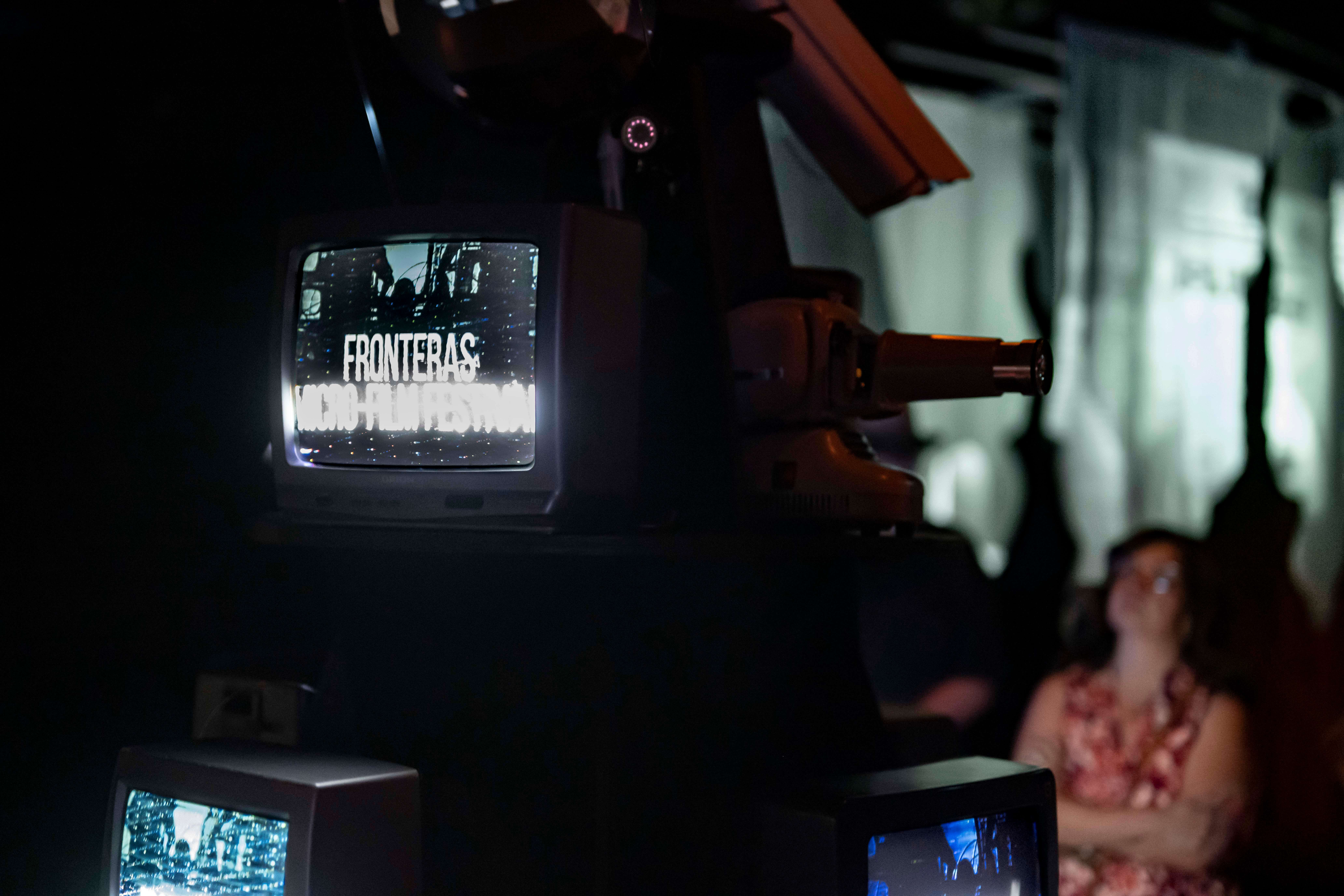 The installation is designed to draw attention to the highly-surveilled nature of national borders, and to create a sense of unease or discomfort, by demonstrating how technology can be used to monitor and control people and their movements. We invite visitors to reflect on how surveillance technology is employed in border enforcement but also in their own lives.