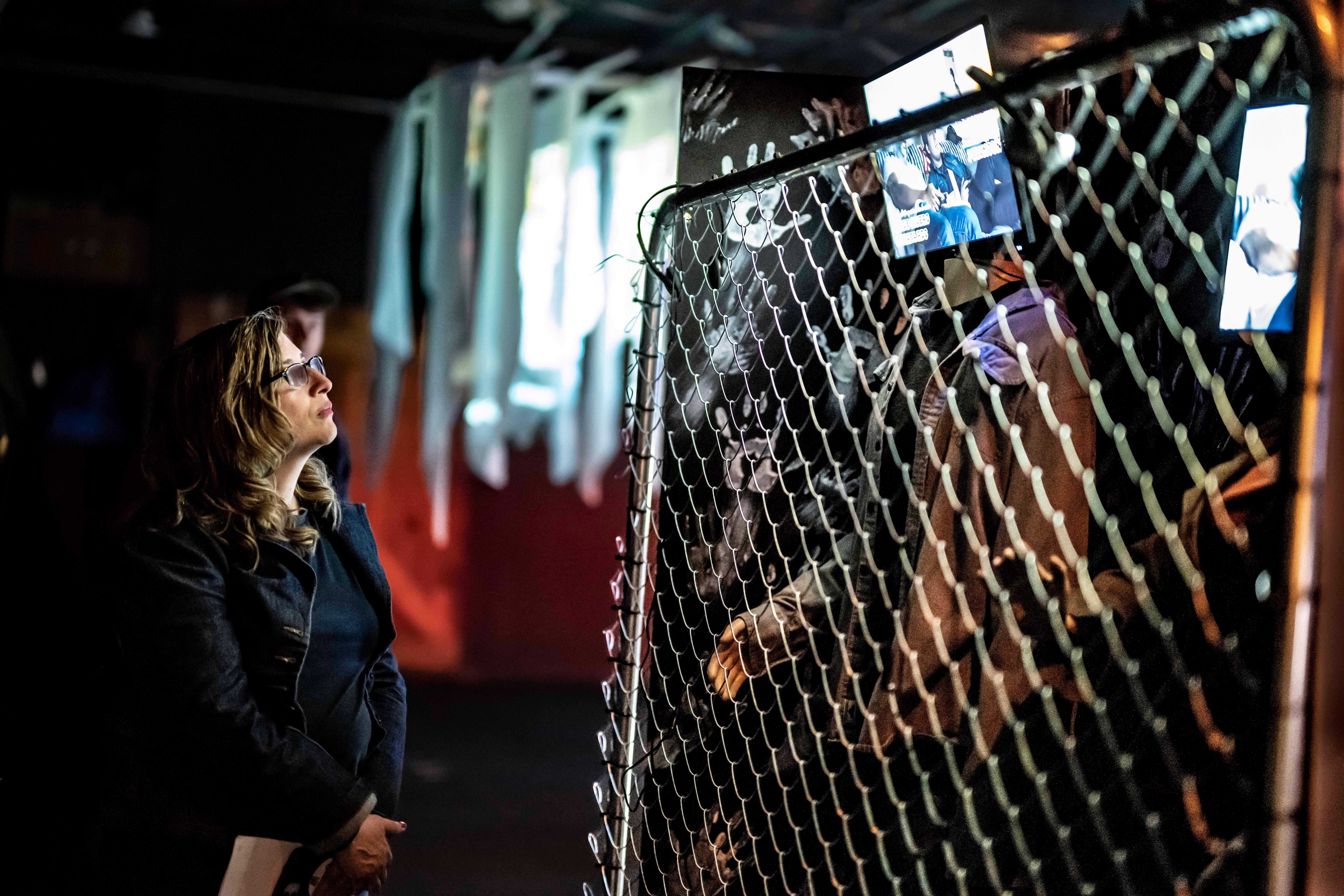 "The Refugees" behind the chain link fence represent the vulnerable, disenfranchised migrant populations who so often struggle to have their perspectives seen and heard. Between language, bureaucratic, and physical barriers, there exist innumerable hurdles that prevent these populations from having their voices amplified as loudly as those of their oppressors.